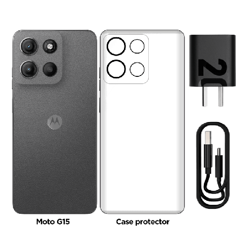 Motorola Moto G15 Almacenamiento: 512 GB Memoria RAM: 4 GB Procesador: Octa-Core Pantalla: 6.5 HD+ 90 Hz Cámara principal: 50 MP Cámara frontal: 8 MP Batería: 5000 mAh con carga rápida Sistema operativo: Android 14 SIM: Dual SIM Colores ilustrativos Colores sujetos a disponibilidad y stock.